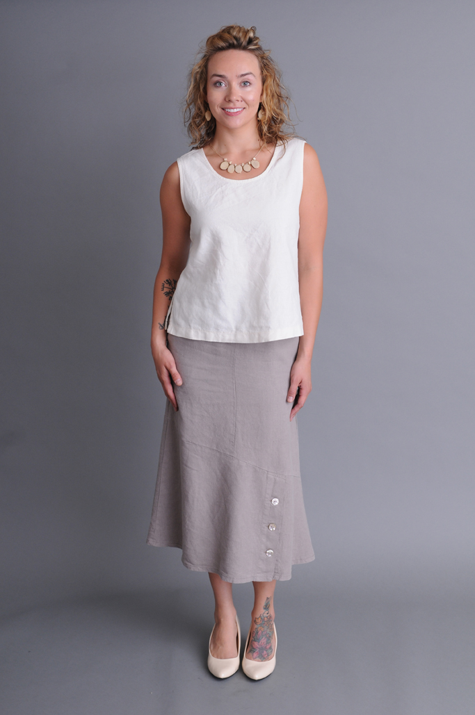 Our Natural Tank Top pairs well with a Grey Fog Angled Skirt.